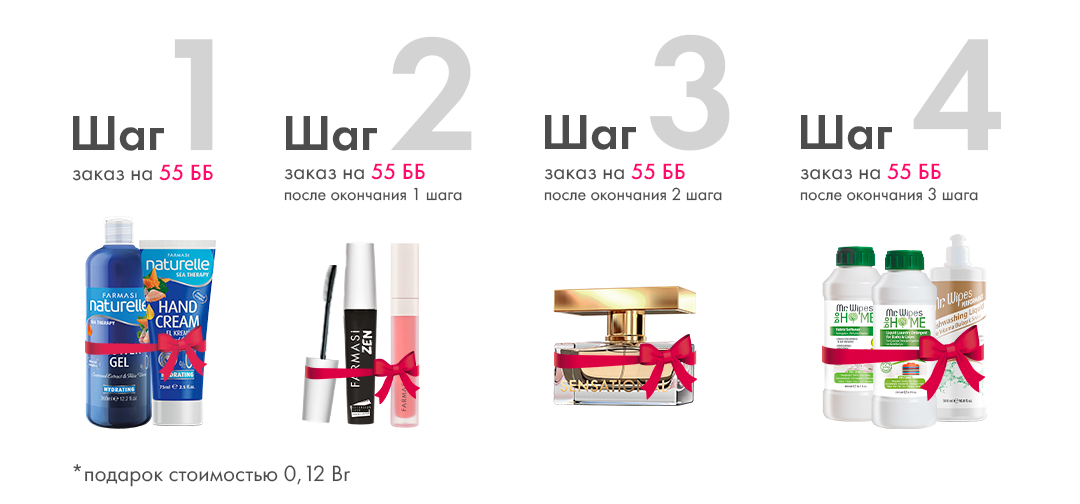 - В следующем месяце достигни статуса Бьюти-консультант (18%) с групповым товарооборотом 2200 ББ или выше и получи 1-ый бонус на сумму 170 Br / 5 610 ₽;