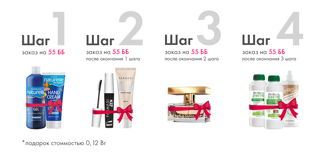 - В следующем месяце достигни статуса Бьюти-консультант (22%) с групповым товарооборотом 3600 ББ или выше и получи 1-ый бонус на сумму 230 Br / 7 590 ₽;