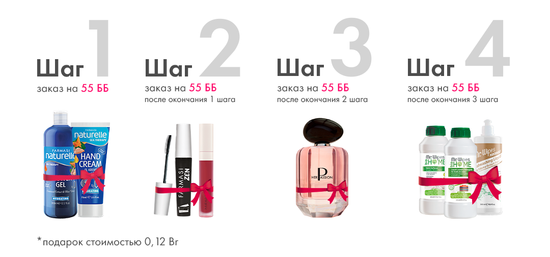 - В следующем месяце достигни статуса Бьюти-консультант (18%) с групповым товарооборотом 2200 ББ или выше и получи 1-ый бонус на сумму 170 Br / 5 610 ₽;